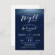 Feiern Sie die Nacht zuvor mit dieser Probe-Dinner-Einladung. Das dunkle Marinedesign zeichnet sich durch schwache Sterne und Glühbirnen aus. Passen Sie Ihre Probe an.