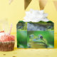 Ein nahes hoch ein Frosch, der heraus auf einer Seite des Felsens des Teichs sitzt.