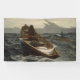 Dieses Design zeigt ein Gemälde des amerikanischen Künstlers Winslow Homer (1836-1910), der für seine Beherrschung mariner Subjekte bekannt war. Es zeigt einen Maine-Fischer in einem Ruderboot, das als Geschichte bekannt ist. Der Mann hat bereits mehrere große Heilbutt gefangen, und sie ruhen in seinem Boot prekär aus. Das schlechte Wetter droht ihn abzuschneiden, während er sich zu seinem Schiff zurückbewegt; er wendet sich vom Betrachter ab und schaut über seine Schulter auf die dunklen Wolken in der Ferne. Die Meere sind unruhig, und der Fischer muss sich ganz klar körperlich anstrengen, um zum Mutterschiff zurückzukehren. Das Gewicht des Heilbutts im Bogen des Bootes verlangsamt ihn, aber wenn er beschließt, seinen Fang hinter ihm verlassen, wird er nicht für seine Arbeit bezahlt werden. Es gibt also eine Menge psychologischer Spannungen im Bild, und es ist eindeutig ein emotionales Werk. Das ursprüngliche Gemälde wurde 1885 fertig gestellt und befindet sich heute im Museum der Schönen Künste, Boston, USA.