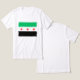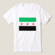 Syrer für eine neue Ära Freiheit T - Shirt Fahne. Die Fahne der Koalitionsstreitkräfte symbolisiert die Einheit und den Kampf der verschiedenen Gruppen, die für den Sturz des Assad-Regimes in Syrien kämpfen. Geboren aus der Asche der Revolution, stellt diese Fahne die kollektiven Bestrebungen einer Nation dar, die nach Freiheit und Demokratie strebt. Sein Design, ein grünes Feld mit drei lebhaften, fetten roten Sternen, hat eine tiefe Bedeutung. Jeder Stern repräsentiert eine Schlüsselfraktion innerhalb der Koalition: Die Freie Syrische Armee: Vertretung des militärischen Flügels der Opposition und kämpft an vorderster Front für ein freies Syrien. Der Syrische Nationalrat: Vertretung der politischen Stimme der Revolution und Streben nach einer demokratischen und integrativen Zukunft. Der Kurdische Nationalrat: Das Bestreben des kurdischen Volkes nach Autonomie und Selbstbestimmung innerhalb eines vereinten Syrien. Diese Flagge ist mehr als nur ein Stück Stoff; sie ist ein Leuchtfeuer der Hoffnung, ein Sammelruf für ein neues Syrien, in dem Freiheit, Gerechtigkeit und Würde vorherrschen. Sie verkörpert die Opfer, die zahllose Syrer in ihrem Kampf für eine bessere Zukunft gebracht haben, eine Zukunft, in der die Träume einer befreiten Nation endlich verwirklicht werden können.