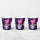 Es handelt sich um lustige Valentinstag Party Tassen, die sich leicht an andere Feiern anpassen lassen, wie z.B. Verlobungsfeiern. Sie sind mit einem lustigen, weißen bärtigen kleinen, blau und rosa gekleideten Gnomen ausgestattet, das eine rote Rose und ein rosa Herz hält. Über dem Gnom befindet sich ein großes rosa Herz, das sagt: "Liebe ist in der Luft". Das Bild wird auf zwei Seiten gedruckt, mit einem Kreisbanner zwischen ihnen, der Ihren eigenen Text enthält. Alles ist auf einem marineblauen Hintergrund mit verstreuten Lavendel und hellrosa Herzen platziert.