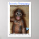 Niedliches Baby-Orang-Utan-Poster lasse Tierfreunde wissen, dass jeder Tag kann Orang-Utan-Aufwertung Tag. Es gibt viele Möglichkeiten, diese bedrohte Tierart retten, die manchmal als Affe bezeichnet wird, wenn sie wirklich ein großer Affe ist. Orangutanen sind die Menschenaffen, die nicht in Afrika, sondern nur in den Regenwäldern Borneo und Sumatra gefunden werden. Viele Leute nennen sie Affen, aber Orang-Utans sind Menschenaffen.Orphane wie dieser hier im Pflegezentrum der Orangutan Foundation Int'l können unter orangutan.org gefördert werden oder Sie können spenden, um Waldflächen zu kaufen, die als Schutzgebiet gerettet werden und freigelassen werden. Rebecca Reeder hilft bei der Rettung von Orang-Utan-Waisen auf der Insel Borneo und spendet ihren Gewinn für diesen Gegenstand.