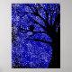 Eine Silhouette einer Eule in einem Baum gegen Sterne