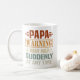 Die Papa-Warnung kann jederzeit plötzlich Nickerch Kaffeetasse