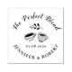 Hochzeits-Briefmarke mit niedlichen Kaffeemaschinen, umgeben von einem Script-Schriftart "die perfekte Mischung" und eleganten personalisierten Monogrammen.