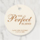 Elegante Hochzeitsfavoriten-Tags mit der Nachricht "Der perfekte Blend" und Ihren Namen und Datum in Kupfer, über einen Elfenbeinhintergrund. Die Schriftart und Hintergrundfarben können beliebig verändert werden. Diese einfachen Tags fügen Ihren Favoriten eine persönliche Touch hinzu.