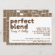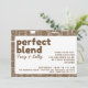 Ein Polterabend für die Liebhaber des Kaffees, die "die perfekte Mischung" sind. Espressobraun und weiß mit einem lustigen Hintergrund von Kaffeetassen und Töpfen, sauberem Schriftart und künstlerischer Gestaltung. Wir laden Sie ein, Liebe für das glückliche Paar auszugießen! Drucken Sie diese coole Einladung oder laden Sie sie digital herunter und holen Sie sich das Kaffeebaus! Ideal zum Duschen von Brautpartys durch Paare.