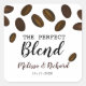 Moderne Kaffeeaufkleber mit Kaffeebohnen auf weißem Hintergrund.Sie sind genau das Richtige für die perfekte Mischung von Kaffeegenüssen für Ihre Gäste. Personalisieren Sie mit Braut- und Bräutigamen, Hochzeitsdatum und Dankeschön Nachricht.
