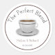 Moderne Kaffeeaufkleber mit Kaffeetasse auf weißem Hintergrund.Sie sind genau das Richtige für die perfekte Mischung von Kaffeegenüssen für Ihre Gäste. Personalisieren Sie mit Braut- und Bräutigamen, Hochzeitsdatum und Dankeschön Nachricht.