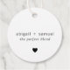 Moderne Gastgeschenk Hochzeit-Tags mit minimalem Design mit der Botschaft "Die perfekte Mischung" und einem Schwarz-Herzen auf weißem Hintergrund. Die Schriftart und Hintergrundfarben können beliebig verändert werden. Diese einfachen, zeitgenössischen Tags eignen sich perfekt für das minimalistische Paar und verleihen Ihren Gefallen eine persönliche Touch.