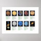 Eine detaillierte Grafik mit einem Bild und Informationen für jeden Planeten in unserem Sonnensystem.
