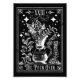 Grunge Tarot Kartendesign für Kaffeeliebhaber! Die Pour über. Weiße und schwarze Illustrationen mit einem Guss über Kaffee, Kaffeebohnen und Skeletthand.