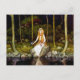 Schöne Abbildung von John Bauer einer schönen Prinzessin mit langen, fließenden blonden Haaren, auf einem Felsen am Rande eines Sees im Wald sitzend, mit einem Blauvogel auf der Hand. Aus der Geschichte, "Die Prinzessin im Wald".