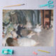 Edgar Degas (19. Juli 1834 - 27. September 1917) war ein französischer Künstler, berühmt für seine pastellfarbenen Zeichnungen und Ölgemälde von Ballerinas. Degas produzierte auch Bronzeskulpturen, Drucke und Zeichnungen. Degas wird besonders mit dem Thema Tanz identifiziert; mehr als die Hälfte seiner Werke stellen Tänzer dar. Obwohl Degas als einer der Gründer des Impressionismus angesehen wird, lehnte er den Begriff ab, indem er es vorzog, als Realist bezeichnet zu werden, und malte ihn nicht im Freien, wie es viele Impressionisten taten. Degas war ein hervorragender Zeichner und besonders meisterhaft bei der Darstellung von Bewegung, wie man an seiner Darstellung von Tänzern und Baden weiblichen Aktas sehen kann. Neben Ballett-Tänzern und Badefrauen malte Degas Rennpferde und Rennjockeys sowie Portraits. Seine Porträts sind für ihre psychologische Komplexität und für ihre Darstellung der menschlichen Isolation bemerkenswert. Zu Beginn seiner Karriere wollte Degas, ein Geschichtsmaler zu sein, eine Forderung, für die er durch seine rigorose akademische Ausbildung und sein nahes Studium der klassischen Kunst gut vorbereitet war. Anfang dreißig wechselte er seinen Kurs, und indem er die traditionellen Methoden eines Geschichtsmalers in zeitgenössischer Materie zum Tragen brachte, wurde er ein klassischer Maler des modernen Lebens. Zitat: Wikipedia