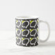 Die q-Tasse kennzeichnet kleines chartreuse Quaero Qs in einem geometrischen Muster.