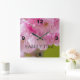 Die quadratische Wall-Uhr mit schönen rosa Blume Wanduhr