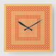 Die quadratische Wall-Uhr, orange Karos und Polka- Wanduhr