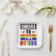 Die Farbpalette der Regenbogenfahne und die unterhaltsame Botschaft von: Anfeuern Sie die Queers auf Tellern, die mit unserem gleichen Design übereinstimmen, personalisierte Servietten und perfekt für eine homosexuelle Hochzeit, Verlobung oder Jubiläum-Party.