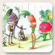 Er scampered weg weg seinem kleinen Mantel, um, weg schreien die Nachrichten zu jedem Passanten zu trocknen, von den Babyzwiebeln, die erfasst wurden, vom Freuden und vom hohen Spargel unten verbogen wurde, um den hübschen Anblick zu sehen voll: Alle glaubten Freude, obwohl die traurig-gesichtigen Kohlfreundblicke Sie zustimmen. Wunderliche Illustration durch Florenz Kate Upton vom Buch "die Rache der Vege-Männer", im Jahre 1897 veröffentlicht, mit Versen von Bertha Upton.