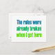 Brauchen Sie eine Entschuldigung für diese Zeiten, wenn Sie erwischt werden, dass Sie die Regeln brechen? Hier geht es: "Die Regeln waren bereits gebrochen, als ich hier got." Es ist das perfekte Alibi!