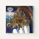 Foto von Zolotareva. Schöner Kronleuchter in der Kathedrale von Panteleimon auf dem Hintergrund der Fresken. Zierleuchter in einer orthodoxen Kirche. Sie können Namen oder benutzerdefinierten Text hinzufügen.
