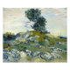 Die Felsen. Vincent van Gogh. Landschaft in kalt-grün-blauen Tönen. Im Vordergrund sind Steine. In der Mitte befindet sich ein Hügel mit einem Baum und Steinen. Der Himmel ist überfüllt. Reproduktion berühmter Kunstbilder im öffentlichen Bereich.