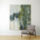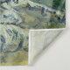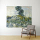 Die Felsen. Vincent van Gogh. Landschaft in kalt-grün-blauen Tönen. Im Vordergrund sind Steine. In der Mitte befindet sich ein Hügel mit einem Baum und Steinen. Der Himmel ist überfüllt. Reproduktion berühmter Kunstbilder im öffentlichen Bereich.