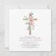 Daughter's Dusty Rose Floral und Eukalyptus - Kreuzung botanische Seite Grüne Wasserfarbe Religious Erste (1.) Heilige Kommunion Einladungen.