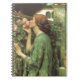 Junge Frau mit dunkelrotem Haar reicht nach oben zu einer kletternden Rose, um den Duft zu riechen. Schöne Kunst aus dem 19. Jahrhundert von John William Waterhouse.
