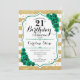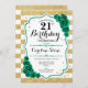 21. Geburtstag Party Einladung. Elegantes florales smaragdgrünes Design mit Rose. Enthält Imitate Glitzer goldene und weiße Streifen und Skript-Schriftart. Ideal für eine stilvolle Damenfeier. Kann für jedes Alter angepasst werden! Gedruckte Zazzle Einladungen oder Sofortdownload digitalen druckbaren Vorlage.