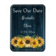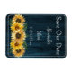 Ankündigen Sie Ihren bevorstehenden Hochzeitstag für Familie und Gäste mit einer rustikalen blauen Sonnenblume Save the Date Magnet. Das Design des Magnet ist aus rustikalem Holz mit einem eleganten Blumenstrauß. Personalisieren Sie mit dem Bräutigam und den Namen der Braut zusammen mit dem Hochzeitstag. Zusätzliche Hochzeitswaren und Geschenke sind mit diesem Design ebenfalls erhältlich.