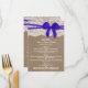 Die rustikal blaue Bogen Hochzeitskollektion ist ein atemberaubendes Design mit einem hübschen rustikalen Burlap-Effekt-Hintergrund mit einem romantischen Vintagen Spitzeneffekt und einem atemberaubenden blauen Bogen. Diese Menüs können für Ihren besondere Anlass personalisiert sein und würden die perfekte Vorlage für Hochzeitsmenüs, Brautparty-Menüs, Partnermenüs, Geburtstagsmenüs und vieles mehr machen. *Bitte beachten Sie, dass Zazzle nur gedruckte Produkte verkauft, sodass dieses Produkt keine echten Bruch-, Spitzen- oder Bänder-/Bogen-Materialien aufweist.