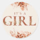Es ist ein Mädchen Herbst Herbst Babydusche Aufkleber mit eleganter Terrakotta Typografie und rustikalen Blumenbeete. Entwickelt von Thisisnotme©