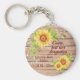 Eine wunderschöne Memorial Key-Kette mit rustikalem Holzhintergrund mit gelb blühenden Aquarellblumen und Stachelleuchten und dem Zitat "Gone, but not Vergessen". Personalisieren mit Namen und Datum