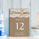 Die rustikale Hochzeitskollektion mit Seestern ist ein atemberaubendes Design mit einem hübschen rustikalen Burleffekt-Hintergrund und einem romantischen Vintagen Spitzeneffekt, der mit einem atemberaubenden Seestern und Zwirn vollendet wird. Diese Tischnummern können für Ihren besondere Anlass personalisiert sein und würden das perfekte Tischzentrums für Ihre Hochzeit, Ihr Brautparty, Ihre Verlobungsfeier, Ihre Geburtstagsparty und vieles mehr machen. *Bitte beachten Sie, dass Zazzle nur gedruckte Produkte verkauft, sodass dieses Produkt keine echten Löffel-, Spitzen-, Seestern- oder Garnmaterialien enthält. *** WIE SIE BESTELLEN *** Bitte passen Sie Ihre Tischnummer an und fügen Sie sie zu Ihrem Warenkorb hinzu. Zazzle verfügt derzeit nicht über ein System, das eine Anpassung der Produkte nach einer Bestellung ermöglicht.