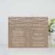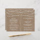 Die schlichte und elegante Saitenleuchte auf der rustikalen Hochzeitskollektion ist ein atemberaubendes Design mit hübschen, weißen Hängeleuchten auf einem Kratzereffekt-Hintergrund, das sich perfekt für jede rustikale Hochzeitsfeier eignet. Diese Programme können für Ihren besondere Anlass personalisiert sein und würden die perfekte Reihenfolge für Ihre Hochzeit, Brautparty, Verlobung Party, Geburtstagsparty und viele andere besondere Anlässe machen. Fügen Sie diesem Design Ihre benutzerdefinierte Formulierung hinzu, indem Sie die "Diese Vorlage bearbeiten"-Felder auf der rechten Seite des Elements verwenden, oder klicken Sie auf die blaue Schaltfläche "Anpassen", um den Text anzuordnen, die Schriftart und Farben zu ändern und um diesem Design zusätzliche Informationen oder Bilder hinzuzufügen. ÜBERPRÜFEN SIE DIE ENTSPRECHENDEN ELEMENTE FÜR DIESE ERHEBUNG