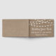 Feiern Sie stilvoll mit diesem rustikalen und sehr trendigen Hochzeitsgast. Das Design ist leicht mit Ihrer speziellen Veranstaltungssprache zu personalisieren und Ihre Gäste werden begeistert sein, wenn sie dieses fabelhafte Gästebuch sehen. Entsprechende Hochzeitssachen finden Sie in der Sammlung.