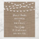 Einfach und elegant, ist die rustikale Hochzeitsliesenkollektion ein atemberaubendes Design mit hübschen, weißen Hängeleuchten auf rustikalem burlap-Effekt-Hintergrund, der sich perfekt für jede Hochzeitsfeier im Land eignet. Diese Labels können für Ihren besondere Anlass personalisiert sein und würden die passenden Labels für Ihre Hochzeit, Ihr Brautparty, Ihre Verlobungsfeier, Ihre Geburtstagsparty und viele weitere besondere Anlässe machen. Fügen Sie dem Design Ihre benutzerdefinierte Formulierung hinzu, indem Sie die Felder "Diese Designvorlage bearbeiten" auf der rechten Seite des Elements verwenden, oder klicken Sie auf die Schaltfläche "Anpassen", um den Text zu ordnen, die Schriftart und Farben zu ändern und um diesem Design zusätzliche Informationen oder Bilder hinzuzufügen.