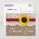 Die rustikale Sonnenblumenkollektion ist ein atemberaubendes Design mit einem hübschen rustikalen Burleffekt-Hintergrund und einem romantischen Vintagen Spitzeneffekt, der mit einer atemberaubenden Sonnenblume auf einem roten Band vollendet wird. Diese Postkarten können für Ihren besondere Anlass personalisiert sein und würden die perfekte Dankeschön-Karte für jede Hochzeit, Brautparty, Verlobung, Geburtstagsparty und vieles mehr machen. *Bitte beachten Sie, dass Zazzle nur bedruckte Postkarten verkauft, sodass diese Dankeschön Postkarten keine echten Bretter-, Spitzen-, Sonnenblumen- oder Bandmaterialien haben. ÜBERPRÜFEN SIE DIE ENTSPRECHENDEN ELEMENTE FÜR DIESE ERHEBUNG