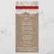 Die rustikale Sonnenblumenkollektion ist ein atemberaubendes Design mit einem hübschen rustikalen Burleffekt-Hintergrund und einem romantischen Vintagen Spitzeneffekt, der mit einer atemberaubenden Sonnenblume und einem roten Band vollendet wird. Diese Programme können für Ihren besondere Anlass personalisiert sein und würden die perfekte Vorlage für Hochzeiten, Brautpartys, Verlobungsfeiern, Geburtstagsfeiern und vieles mehr machen. *Bitte beachten Sie, dass Zazzle nur gedruckte Produkte verkauft, sodass dieses Produkt keine echten Bruch-, Spitzen-, Sonnenblumen- oder Farbbandmaterialien enthält. ÜBERPRÜFEN SIE DIE ENTSPRECHENDEN ELEMENTE FÜR DIESE ERHEBUNG