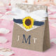 Feiern Sie stilvoll mit diesen eleganten und sehr trendigen Gastgeschenk Hochzeiten. Das Design ist mit einer rustikalen Sonnenblume ausgestattet, die sich durch eine Kappe, Spitzen- und Marineband auszeichnet und sich perfekt für jedes Land oder jede Scheunen-Hochzeitsfeier eignet. Das Design ist einfach zu personalisieren mit Ihren eigenen Monogramm-Initialen und Ihre Familie und Freunde werden begeistert sein, wenn sie diese fabelhaften Gefälligkeitsboxen erhalten. Matching-Elemente finden Sie in der Auflistung.