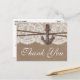 Die rustikale Hochzeitskollektion für den nautischen Anker ist ein atemberaubendes Design mit einem schönen rustikalen Beinschlaffeffekt-Hintergrund und einem romantischen, Vintagen, weißen Spitzeneffekt, der mit einem nautischen Anker und Schwanz vollendet ist. Diese Dankeschön Postkarten können für Ihren besondere Anlass personalisiert sein und würden das perfekte Dankeschön für jede Strandhochzeit, Brautparty, Verlobungsfeier, Geburtstagsparty und vieles mehr machen. *Bitte beachten Sie, dass Zazzle nur gedruckte Postkarten verkauft, sodass diese Dankeschön Postkarten keine echten Beinschleifen, Spitzen, Anker oder Garnelen haben.