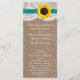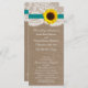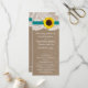 Die rustikale Sonnenblumenkollektion ist ein atemberaubendes Design mit einem hübschen rustikalen Burleffekt-Hintergrund und einem romantischen Vintagen Spitzeneffekt, der mit einer atemberaubenden Sonnenblume und einem aquamarinen Band vollendet wird. Diese Programme können für Ihren besondere Anlass personalisiert sein und würden die perfekte Vorlage für Hochzeiten, Brautpartys, Verlobungsfeiern, Geburtstagsfeiern und vieles mehr machen. *Bitte beachten Sie, dass Zazzle nur gedruckte Produkte verkauft, sodass dieses Produkt keine echten Bruch-, Spitzen-, Sonnenblumen- oder Farbbandmaterialien enthält. ÜBERPRÜFEN SIE DIE ENTSPRECHENDEN ELEMENTE FÜR DIESE ERHEBUNG