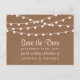Die schlichte und elegante Saitenleuchte der rustikalen Kraft Hochzeitskollektion ist ein atemberaubendes Design mit hübschen, weißen Hängeleuchten auf einem Kraft-Effekt-Hintergrund, der sich perfekt für jede rustikale Hochzeitsfeier eignet. Diese Save the Date Postkarten können für Ihren besondere Anlass personalisiert sein und würden die perfekten Ankündigungen für Ihre Hochzeit, Brautparty, Verlobungsfeier, Geburtstagsparty und viele weitere besondere Anlässe machen. Fügen Sie diesem Design Ihre benutzerdefinierte Formulierung hinzu, indem Sie die "Diese Vorlage bearbeiten"-Felder auf der rechten Seite des Elements verwenden, oder klicken Sie auf die blaue Schaltfläche "Anpassen", um den Text anzuordnen, die Schriftart und Farben zu ändern und um diesem Design zusätzliche Informationen oder Bilder hinzuzufügen. ÜBERPRÜFEN SIE DIE ENTSPRECHENDEN ELEMENTE FÜR DIESE ERHEBUNG
