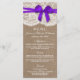 Die rustikale lila Bogen-Hochzeitskollektion ist ein atemberaubendes Design mit einem hübschen rustikalen Burlap-Effekt-Hintergrund mit einem romantischen Vintagen, weißen Spitzeneffekt und einem atemberaubenden lila Bogen. Diese Menüs können für Ihren besondere Anlass personalisiert sein und würden die perfekte Vorlage für Hochzeitsmenüs, Brautparty-Menüs, Partnermenüs, Geburtstagsmenüs und vieles mehr machen. *Bitte beachten Sie, dass Zazzle nur gedruckte Produkte verkauft, sodass dieses Produkt keine echten Bruch-, Spitzen- oder Bänder-/Bogen-Materialien aufweist.