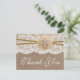 Die rustikale Sand-Dollar Hochzeitskollektion ist ein atemberaubendes Design mit einem hübschen rustikalen Burlap-Effekt-Hintergrund mit einem romantischen Vintagen Spitzeneffekt, der mit einem atemberaubenden Sand-Dollar und Zwirn veredelt wird. Diese Dankeschön Postkarten können für Ihren besondere Anlass personalisiert sein und würden das perfekte Dankeschön für jede Strandhochzeit, Brautparty, Verlobungsfeier, Geburtstagsparty und vieles mehr machen. *Bitte beachten Sie, dass Zazzle nur gedruckte Postkarten verkauft, sodass diese Dankeschön Postkarten keine echten Beinschleifen, Spitzen, Sand Dollar oder Garnelen haben.