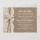 Die rustikale Hochzeitskollektion mit Seestern ist ein atemberaubendes Design mit einem hübschen rustikalen Burleffekt-Hintergrund und einem romantischen Vintagen Spitzeneffekt, der mit einem atemberaubenden Seestern und Zwirn vollendet wird. Diese Save the Date Postkarten können für Ihren besondere Anlass personalisiert sein und würden die perfekte Ankündigung für Ihre Hochzeit machen. *Bitte beachten Sie, dass Zazzle nur gedruckte Produkte verkauft, sodass dieses Produkt keine echten Löffel-, Spitzen-, Seestern- oder Garnmaterialien enthält.