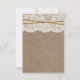Die rustikale Garnbogen-Hochzeitskollektion ist ein atemberaubendes Design mit einem hübschen rustikalen Burlap-Effekt-Hintergrund mit einem romantischen Vintagen, weißen Spitzeneffekt-Trim, der mit einem Garnbogen fertig ist. Diese RSVP-Karten können für Ihren besondere Anlass personalisiert sein und würden die passenden Beilagen für Hochzeit, Brautparty, Verlobungsfeier, Geburtstagsparty und vieles mehr machen. Entsprechende Hochzeitssachen finden Sie in der Sammlung.