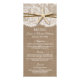 Die rustikale Hochzeitskollektion mit Seestern ist ein atemberaubendes Design mit einem hübschen rustikalen Burleffekt-Hintergrund und einem romantischen Vintagen Spitzeneffekt, der mit einem atemberaubenden Seestern und Zwirn vollendet wird. Diese Menükarten können für Ihren besondere Anlass personalisiert sein und würden die perfekte Vorlage für Hochzeitsmenüs, Brautparty-Menüs, Partnermenüs, Geburtstagsmenüs und vieles mehr machen. *Bitte beachten Sie, dass Zazzle nur gedruckte Produkte verkauft, sodass dieses Produkt keine echten Löffel-, Spitzen-, Seestern- oder Garnmaterialien enthält.