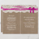 Die rustikale rosa Bogen Hochzeitskollektion ist ein atemberaubendes Design mit einem hübschen rustikalen Burlap-Effekt-Hintergrund mit einem romantischen Vintagen Spitzeneffekt und einem atemberaubenden rosa Bogen. Diese Programme können für Ihren besondere Anlass personalisiert sein und würden die perfekte Vorlage für Hochzeiten, Brautpartys, Verlobungsfeiern, Geburtstagsfeiern und vieles mehr machen. *Bitte beachten Sie, dass Zazzle nur gedruckte Produkte verkauft, sodass dieses Produkt keine echten Bruch-, Spitzen- oder Bänder-/Bogen-Materialien aufweist.